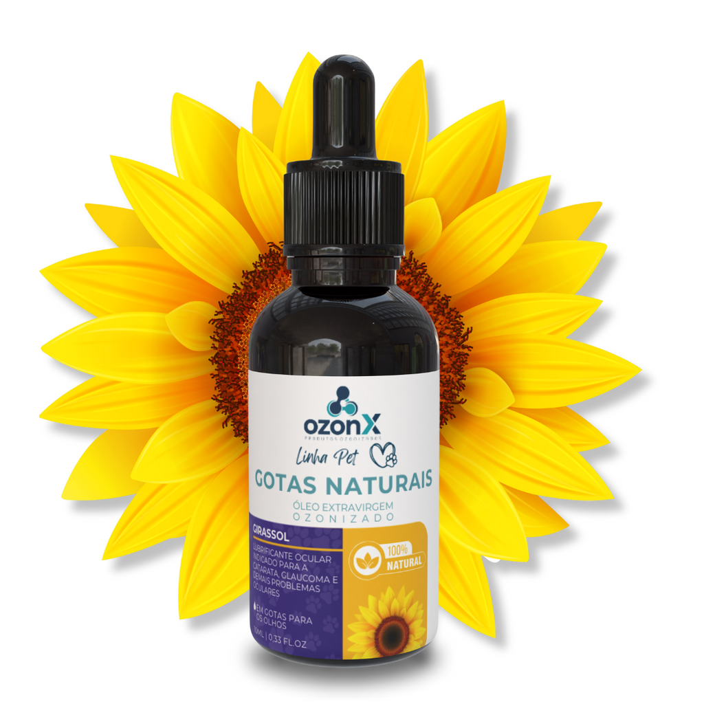 O óleo de girassol é amplamente reconhecido por suas propriedades hidratantes e antioxidantes. Quando combinado ao ozônio, essas propriedades são potencializadas em até 20 vezes, resultando em um produto que pode ajudar a manter os olhos do seu pet hidratados e protegidos contra complicações indicadas e sugeridas de forma complementar.